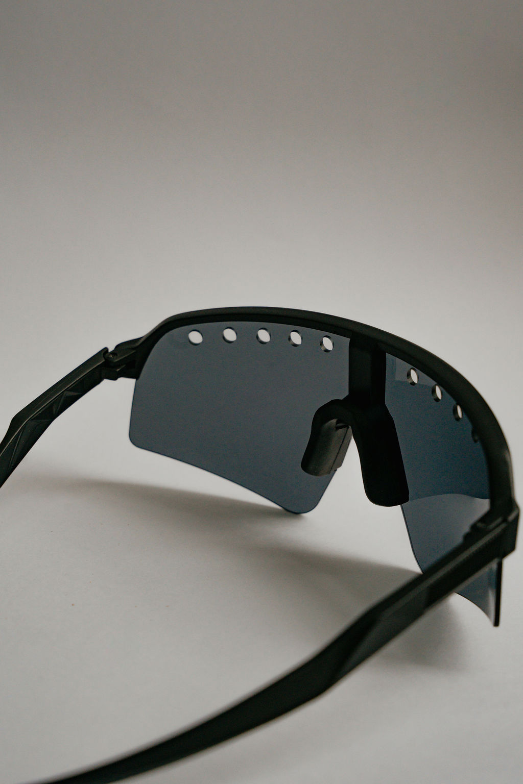 Óculos de sol especialmente para atividades esportivas, com formato moderno. Armação e hastes leves proporcionando mais conforto ao longo do treino. Lentes com proteção UV e furos estratégicos para ventilação (evitando embaçamento).